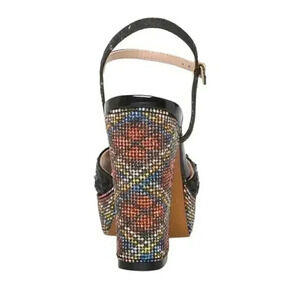 Step up your platform heel style with the ALAIA plaid rhinestone heel. This heel features a sequins upper and rhinestone plaid pattern along the heel and platform.