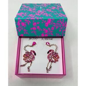 NIB Betsey Johnson Womens Pink and Rose Gold Linear Drop Flamingo Earrings
