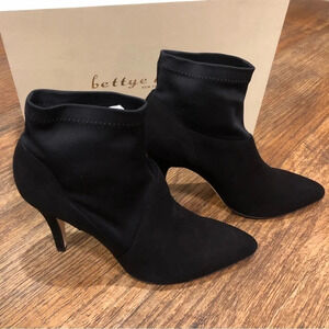 NIB Bettye Muller Gidget Black Suede Stretch Bootie Size 7.5