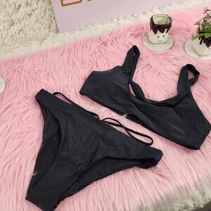 black bikini | Brazilian swimsuit | push-up top | size medium | swim in style | tied design | customizable fit | beach fashion | swimsuit elegance | medium size bikini | chic beachwear | stylish swim | beach ensemble | fashion-forward bikini | sophisticated swimwear | alluring cut | swimwear collection | trendy beach attire | push-up support | Brazilian allure | black swimsuit | beach glamour | medium size swimwear | fashionable beach style | sun-soaked days | swimwear fashion