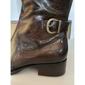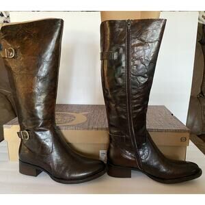 NWT Born Brown GIBB Rich Artisan Finely Grained Leather Buckle Zipper Tall Boots. Born Gibb Knee High Riding Boot Women's Size 6.5 M Color Brown