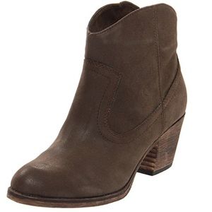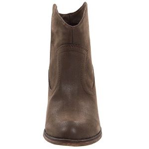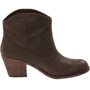 Ankle-length western boot with stacked heel and cushioned footbed.