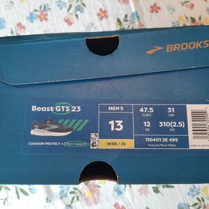 New in box with original packaging, never worn. My giant teen outgrew these and conveniently forgot to tell me before the return window closed. Awesome! My loss = your gain. The Brooks Beast GTS 23 men’s shoes deliver trusted stability and total comfort thanks to a wide base, soft cushioning, and a generous fit.