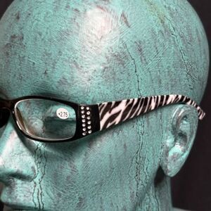 Bundle of 4 +2.75 reading glasses with black front and zebra striped arms.