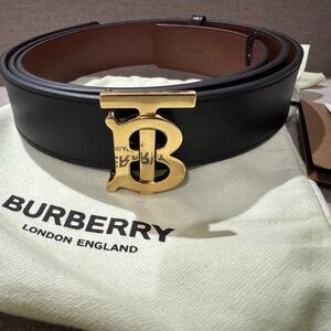 NIB Burberry Gold-Tone TB Logo Buckle Reversible Leather Belt (medium)