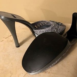 NIB CASADEI BLUE GREY SATIN MULE HEEL 9