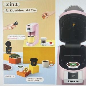 NIB CHULUX Upgrade Single Serve Coffee Maker for K Cup & Ground Coffee, Pink