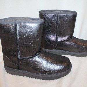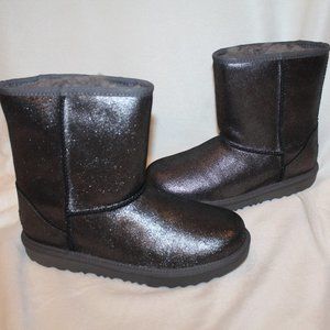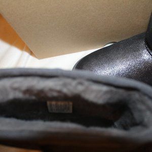 NIB CLASSIC SHORTS LEATHER SHEARLING METALLIC CHARCOAL GRAY BLACK BOOTS