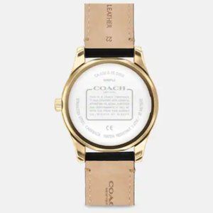 NIB COACH CASEY WATCH, 42mm MINERAL CRYSTAL BUCKLE CLOSURE GOLD TONE LEATHER