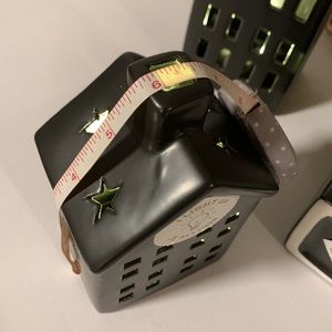 NIB Ceramic Set of 3 LED Light Houses Black Matte color
