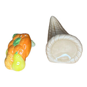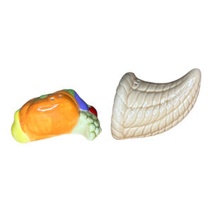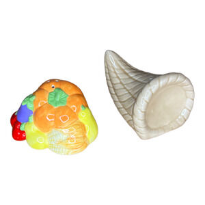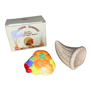 NIB Ceramic Traditional Cornucopia Salt and Pepper Shakers - Russ Berrie #15603