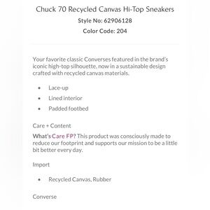 Your favorite classic Converses featured in the brand’s iconic high-top silhouette, now in a sustainable design crafted with recycled canvas materials.