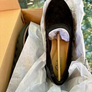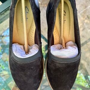 NIB - Clarks Black Suede Loafers - Women’s 8 1/2 Wide