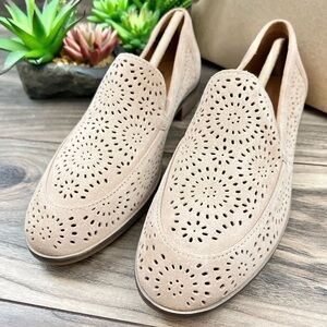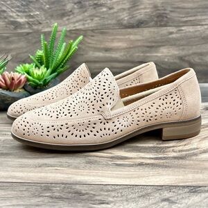 NIB Clarks Trish Calla Sand Suede Smoking Loafer Flats Perforated