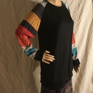 NEW IN PACKAGE! Cloud Zeal black with multicolored long sleeve top, size Large. Made of 65% polyester and 35% cotton.