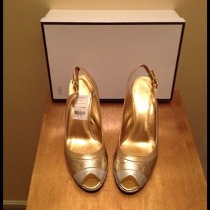 NWT / Mat Gold/Silver. Awesome, super Comfy sandals! The wedge is approx 4" w/1/2" platform. BUNDLE w/Tote & and save 💰.