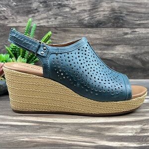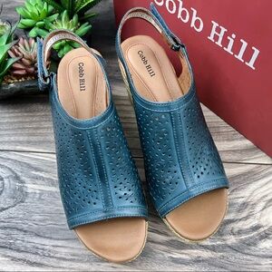 NIB Cobb Hill By Rockport Erika Open Toe Slingback Wedge Sandal Blue Leather