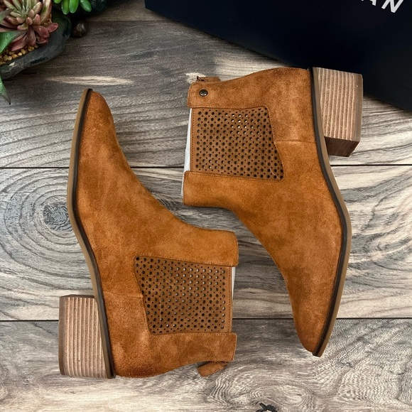 NIB Cole Haan Val Bootie Pointed Toe Ankle Boots British Tan Suede 8B 38.5