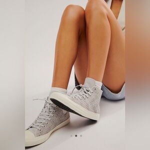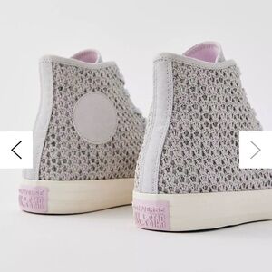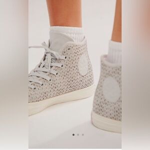 Swapping their classic canvas for crochet, these high-top converse feature knit uppers and tonal details for a totally cool twist.