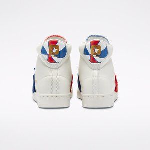 Pro Leather high-top is reimagined for a new era with this white leather 'Birth of Flight' rendition. Rooted to the court, it’s overlaid with Velcro All Star detailing in blue and red, and completed with a basketball-inspired touch of golden branding at the heel.
