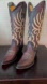 Gorgeous chocolate leather cowboy boots by Corral feature 3D Foam embroidery in cream/tan with green stitching detail & brass studs. New in box, never worn.