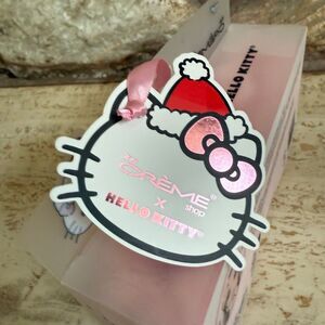 Pink headband with single large cream colored bow with hello kitty and crème shop logo