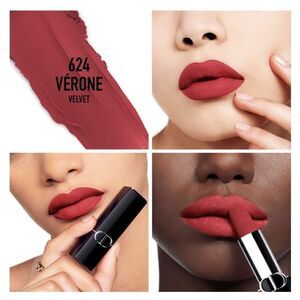 Long-wearing, Rouge Dior is infused with hydrating floral lip care for 24 hours* of comfort. A true couture accessory dressed in signature Dior style, the new Rouge Dior lipstick is adorned with the emblematic cannage pattern and a CD band. Its magnetic lid clips on and off in one simple step. The matte velvet finish has a smooth, enveloping texture for full, soft lips. Without compromising comfort, these velvet lipsticks have a barely-there feel that leaves lips plump and smooth. The stick is decorated with a pattern inspired by Dior fabrics.