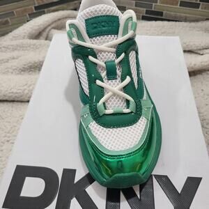 NIB DKNY Juna Everyday Lace Up Platform Athletic Sneaker White/Green sz 5