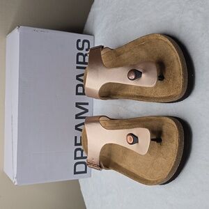 NIB DREAM PAIRS Women's Supportive Cork Flip Flops Sz US 9.5 Rose Gold