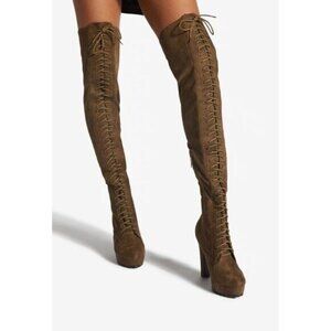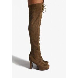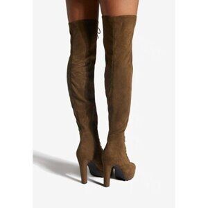 NIB Dark Olive Over The Knee Faux Suede Platform Heel Boots
