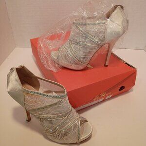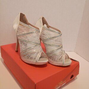 NIB De BLOSSOM COLLECTION Sz 6 Ivory Lace 4" Stiletto Jeweled Heels