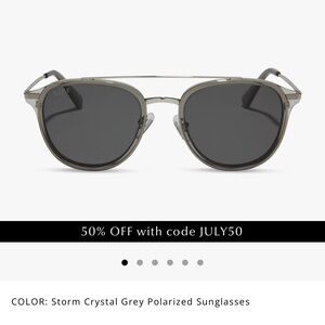 Silver aviator style sunglasses with gray acetate rims to add an extra flair of style to an old classic. These are new in box, includes case and cleaning cloth.