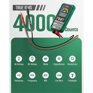NIB Tesmen TSM-522S TRMS 4000 counts is a smart multimeter that combines automatic and manual functions. The automatic mode can automatically switch between the three measurement tasks of AC/DC voltage, resistance, and continuity without any operation, while the manual mode can freely select all measurement tasks, which improves the flexibility and efficiency of measurement.