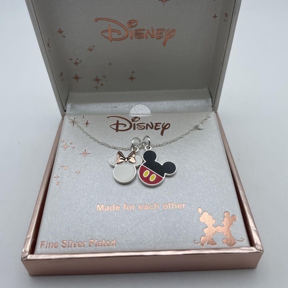 NIB Disney Fine Silver Plated & Enamel Mickey & Minnie Double Pendant Necklace - Super cute necklace for any Disney Fan!