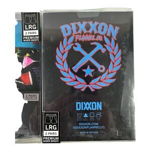 The NIB Dixxon Flannel Company Men’s Large Premium Boxer Briefs come in a set of 4 pairs, each featuring a tropical design. These boxer briefs are made of a comfortable blend of spandex and cotton, offering stretch for added comfort. The black color and logo pattern add a stylish touch to these designer underwear, suitable for all seasons. Machine washable for easy care, these boxer briefs are a great choice for men looking for high-quality and fashionable underwear.