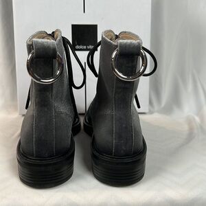 NIB Dolce Vita Bardot Charcoal Velvet Combat Boots Booties - 6.5