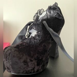 NIB Dolls Kill Widow Nocturnal Garden Platform Mary Janes in Black Velvet & Lace