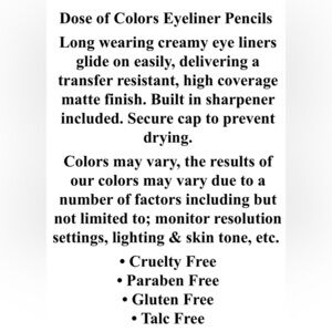 A long-wearing eyeliner pencil. Gliding effortlessly along the lash line, dose of colors eyeliner delivers a transfer-resistant and high-coverage matte eyeliner pencil that never fails to impress.