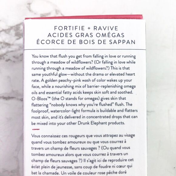 New in box. Drunk Elephant O-Bloos Rosi Drops Blush Serum Makeup w/ Lala Retro Sample