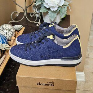 NIB Earth Elements Men's Anton Casual Knit Sneaker, Denim/Cream