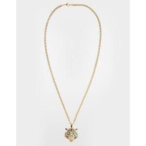 NIB Ed Hardy Tiger Head Crystal Pave Gold Tone Necklace Chain Pendant
