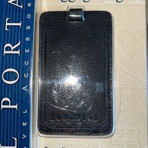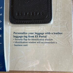 NIB El Portal black leather luggage tag. Security flap for identification window.