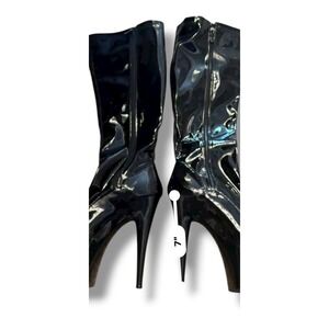 Keywords: Ellie Shoes, Platform Boots, Stiletto Heel Boots, Knee High Boots, Black Patent Boots, Stripper Boots, Gogo Boots, Exotic Dance, Cosplay Boots, Womens Boots, Size 10 Boots, Patent Leather Boots, Party Boots, Clubwear
