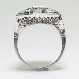 NIB Silver CZ Diamond and synthetic Sapphire Ring