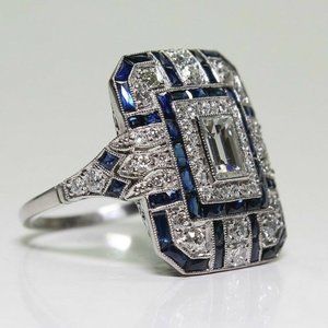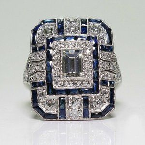 NIB Emerald Cut Crystal & Sapphire Cocktail Ring 6, 7, 8, 9, 10