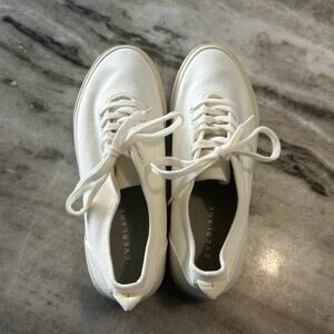 Keywords: Everlane sneakers, Forever Sneaker white, canvas lace-up shoes, women’s size 7 sneakers, men’s size 5 sneakers, unisex white sneakers, sustainable footwear, Everlane casual shoes, new in box sneakers, minimalist white sneaker