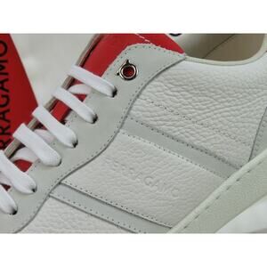 NIB FERRAGAMO ACHILLE 1 WHITE RED LEATHER LOGO SNEAKERS 9.5 42.5 ITALY