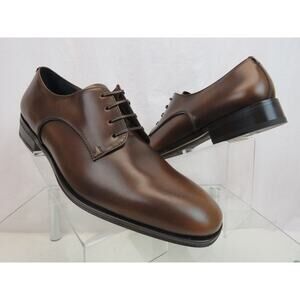 NIB FERRAGAMO DANIEL BURNISHED BROWN BROGUE LEATHER LACE UP DERBY OXFORDS 10 E