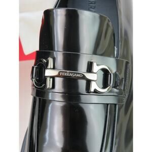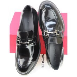 NIB FERRAGAMO FIORELLO BLACK PATENT LEATHER GANCINI BIT LOGO LOAFERS 9.5 M 42.5