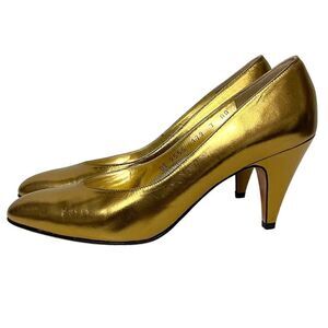 NIB FERRAGAMO Vintage Deadstock Gold Metallic Leather Pumps 7AA